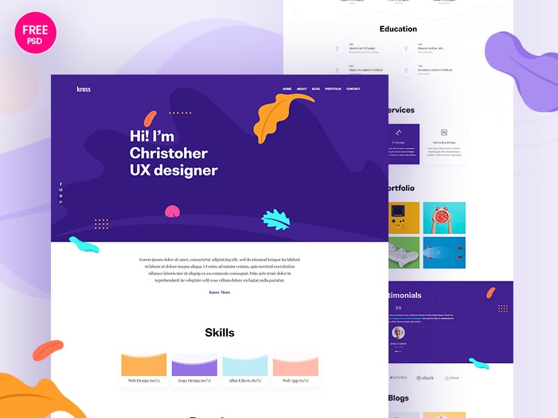 Themefisher.com created a clean and creative portfolio template for creative people. It has a nicely illustrated home page, portfolio page, blog page, contact form. Download free HTML version visit https://themefisher.com/products/kross-creative-portfolio-template.